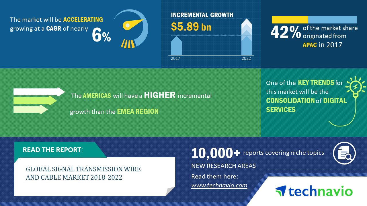 根據(jù)Technavio發(fā)布最新的市場(chǎng)研究報(bào)告,全球信號(hào)傳輸電纜市場(chǎng)預(yù)計(jì)在2018-2022年的復(fù)合年增長率接近6%。預(yù)計(jì)到2022年,全球信號(hào)傳輸電纜市場(chǎng)需求累計(jì)增長58.9億美元。