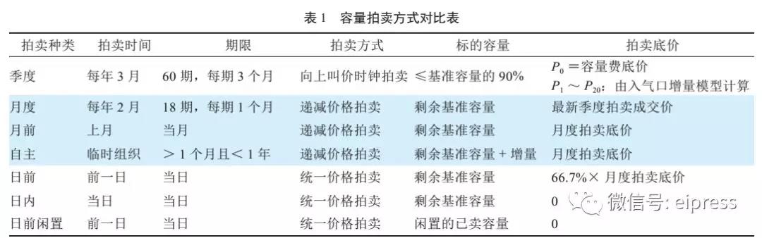 ②月度、月前和自主拍賣采用遞減價(jià)格拍賣法(以歧視價(jià)格結(jié)算),只有一輪,由買方自主確定報(bào)價(jià)并密封遞交,開標(biāo)后按照報(bào)價(jià)從高至低排序,依次根據(jù)各競價(jià)方的競價(jià)容量來分配,直至拍賣容量分配完畢或達(dá)到拍賣底價(jià)時(shí)結(jié)束,按各競價(jià)方的實(shí)際報(bào)價(jià)來結(jié)算。③即期拍賣包括日前、日內(nèi)和日前閑置 3種,均采用統(tǒng)一價(jià)格拍賣法,與遞減價(jià)格拍賣法類似。區(qū)別在于,以結(jié)束時(shí)的最低報(bào)價(jià)作為統(tǒng)一的結(jié)算價(jià)格。前 6 種都是固定容量的拍賣,只有日前未用是可中斷容量的拍賣。