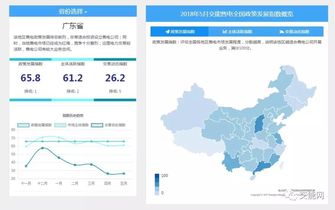 在“全國售電政策發(fā)展指數(shù)”取得巨大成功與關(guān)注后,交能網(wǎng)基于內(nèi)部政策數(shù)據(jù)庫,獨(dú)家發(fā)布該指數(shù),并在新版網(wǎng)站中整合電力指數(shù)頁面,希望幫助所有關(guān)心電改與售電的同仁能夠更好地了解各地電改全貌。