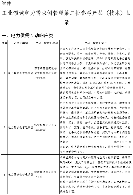 工業(yè)領域電力需求側(cè)管理第二批參考產(chǎn)品(技術)目錄公示:含電力需求側(cè)管理等16項產(chǎn)品技術