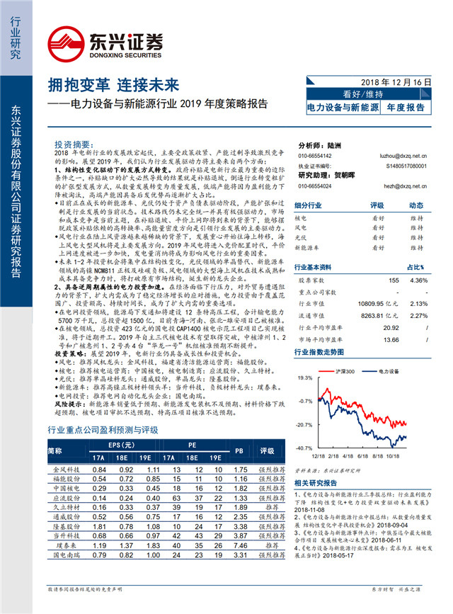 電力設(shè)備與新能源行業(yè)2019年度策略報告:擁抱變革 連接未來
