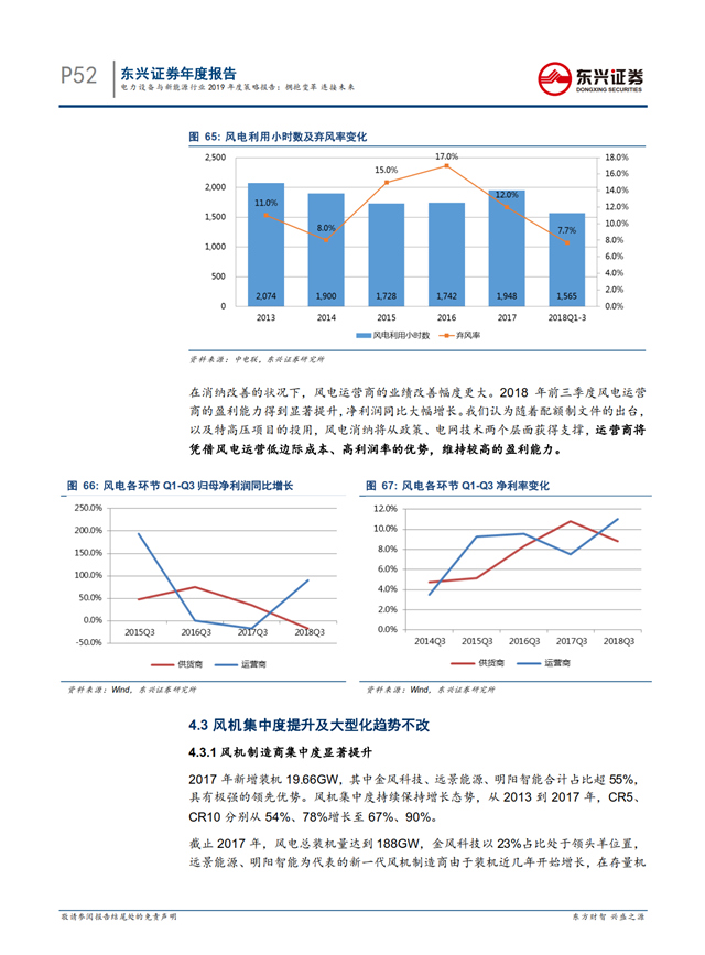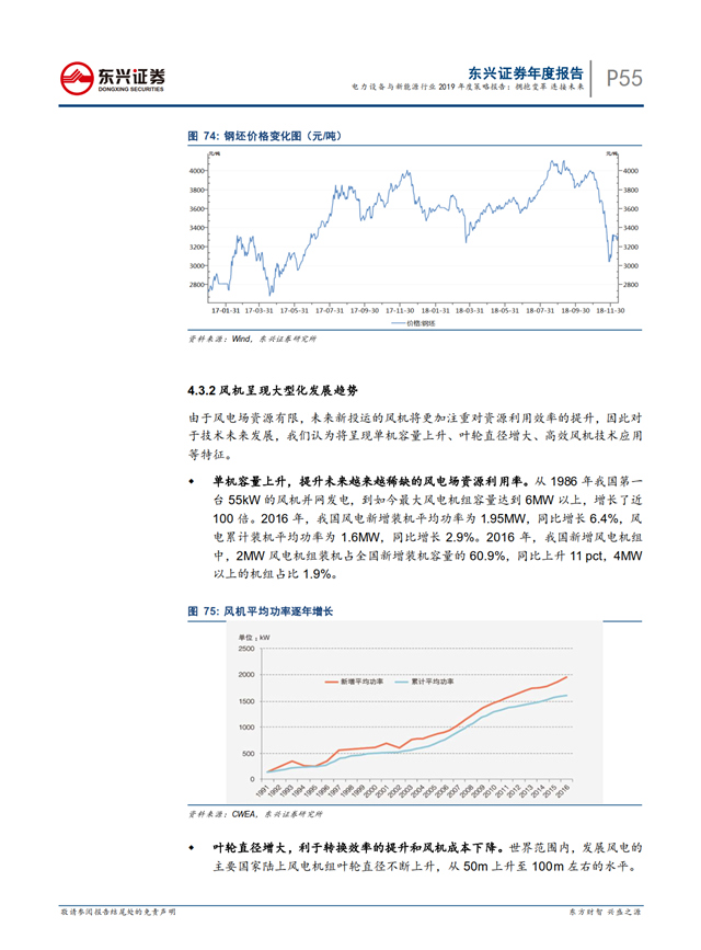 風(fēng)電行業(yè)在陸上風(fēng)資源越來越稀缺的背景下,發(fā)展重心開始往海上轉(zhuǎn)移,海上風(fēng)電大型風(fēng)機將是主要發(fā)展方向。2019年風(fēng)電將進入競價配置時代,平價上網(wǎng)進度被進一步加快,發(fā)電量消納將成為影響風(fēng)電行業(yè)的重要因素。