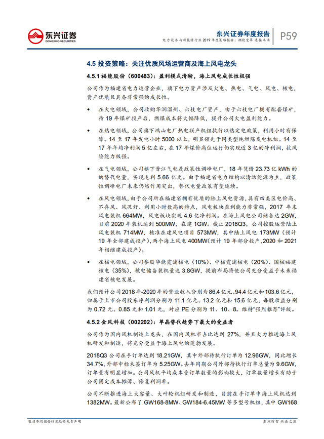 投資策略:展望2019年,電新行業(yè)仍具備成長性和投資機會。