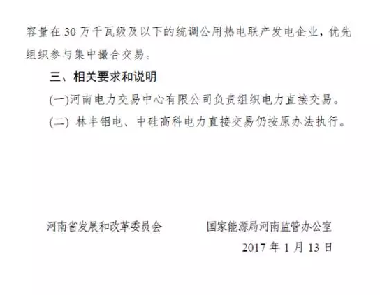 河南發(fā)改委發(fā)布2017年電力直接交易規(guī)則