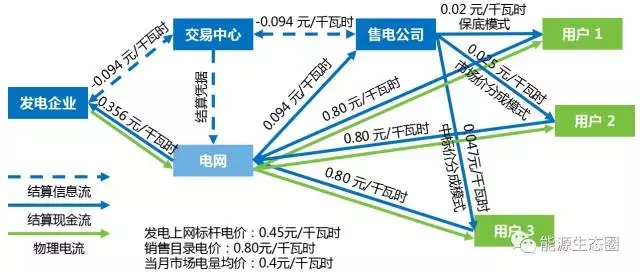 上圖是對購售電業(yè)務(wù)流程的簡化,其中也包括三方合同流程的簡略。