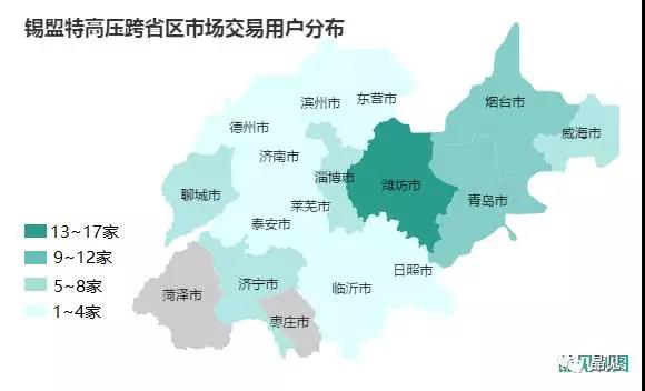 從下面的圖我們可以發(fā)現(xiàn),山東省可以參與跨省區(qū)交易的電力用戶主要集中在東營、濰坊、青島、臨沂。