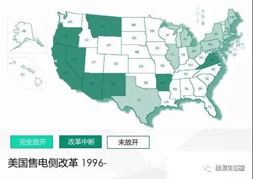 1、售電側(cè)放開之全球進(jìn)度說到售電側(cè),其實并不是每個國家的每個省份售電側(cè)都已經(jīng)非常開放的,包括美國、澳洲、歐洲等國家在內(nèi)也不例外。美國作為經(jīng)濟(jì)自由化的國家,在1996年就開始了售電側(cè)改革,但是在2002-2003