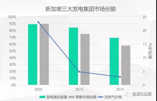 顯然,這個政策的效果比較明顯。2003-2014年傳統(tǒng)售電公司市場占有率有所下降,2007年最高限價取消之后,有40%的居民或者小型的商業(yè)用戶已經(jīng)轉(zhuǎn)到新的售電公司,從這一年開始,新的售電公司和傳統(tǒng)的售電公司開始在同一個平臺上競爭。