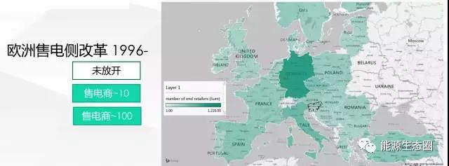 因為歐洲國家整體經(jīng)歷過一次歐盟改革,所以在歐盟的指令下,除瑞士之外,歐盟所有的國家都進(jìn)行了售電側(cè)改革,至今為止幾乎都完成了售電側(cè)改革,但是售電商的數(shù)目會存在較大的差異,例如法國的售電商數(shù)量在10-20家左右,而德國則超過1000家。