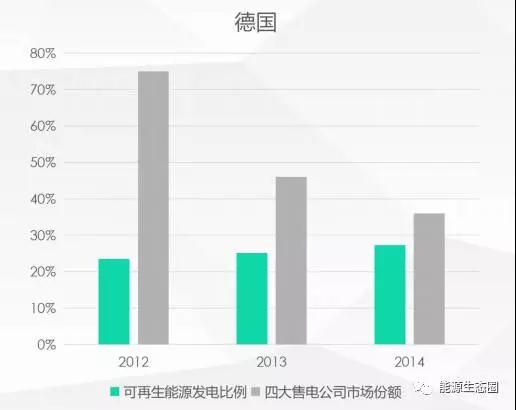 德國分布式能源發(fā)展的比較好。分布式能源其中一個特點是投資比較小,小型的售電公司完全可以承擔(dān),并且有些售電公司非常善于做售電+金融的結(jié)合,即售電公司為用戶進(jìn)行投資,用戶從電費中回收投資,這樣的模式使得小的售電公司有比較穩(wěn)定的現(xiàn)金流和發(fā)電資產(chǎn),同時跟用戶建立了良好的關(guān)系。所以德國在分布式能源發(fā)展比較好的情況下,特別是光伏、風(fēng)電領(lǐng)域,原來的四大傳統(tǒng)售電公司市場份額有所降低,小型的售電公司開始爭奪用戶側(cè)可再生能源的資源以及售電資格。