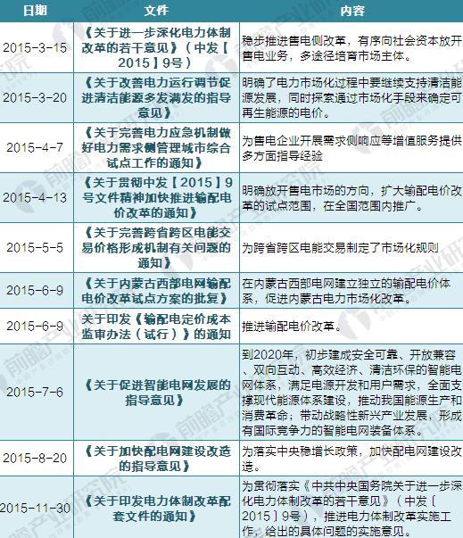 2012年3月18日,國務院批轉國家發(fā)改委《關于2012年深化經(jīng)濟體制改革重點工作的意見》,再次強調(diào)深化電力體制改革。2015年3月,《關于進一步深化電力體制改革的若干意見》(中發(fā)〔2015〕9號)(以下簡稱9號文)的公布展開了新一輪電力體制改革。