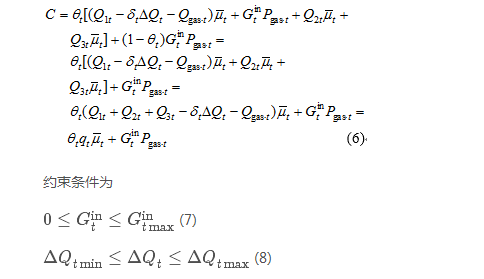 為得式(6)中到天然氣進(jìn)氣量Gin與轉(zhuǎn)化電量Qgas之間的關(guān)系,將式(1)展開(kāi):