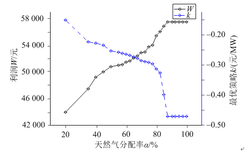 圖10 天然氣分配率與最優(yōu)策略的關(guān)系