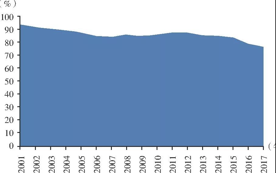圖1 2001—2017年我國能源自給率情況