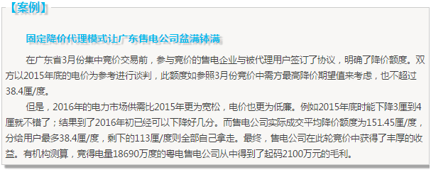 3、售電公司開始和電力用戶按照1:2的比例分成這部分降價,在0.3元的降價幅度中,售電公司自己留下0.1元/度,電力用戶享受0.2元/度的降價幅度。