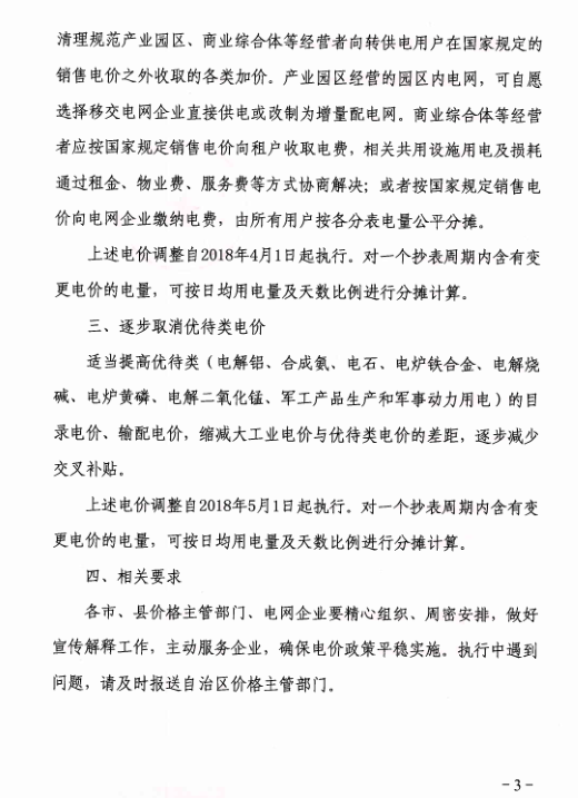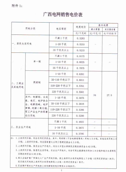 廣西壯族自治區(qū)物價(jià)局日前發(fā)布了《關(guān)于降低一般工商業(yè)電價(jià)有關(guān)事項(xiàng)的通知》,落實(shí)已出臺(tái)的電網(wǎng)清費(fèi)政策,取消臨時(shí)接電費(fèi)。免收余熱、余壓、
