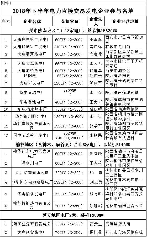 陜西省2018年下半年電力直接交易有關(guān)事項(xiàng)的公告