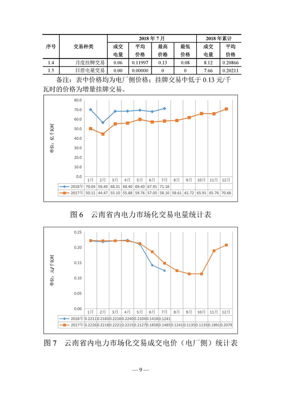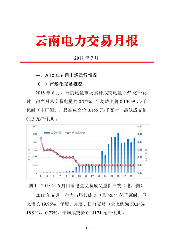 昆明電力交易中心發(fā)布了《云南電力交易月報》,2018年6月份成交電量68.44億千瓦時,平均成交價0.14174元/千瓦時,7月份省內(nèi)市場成交電量71....