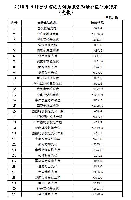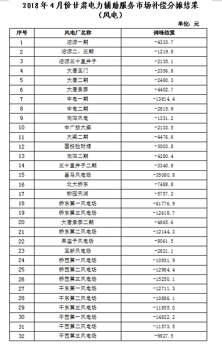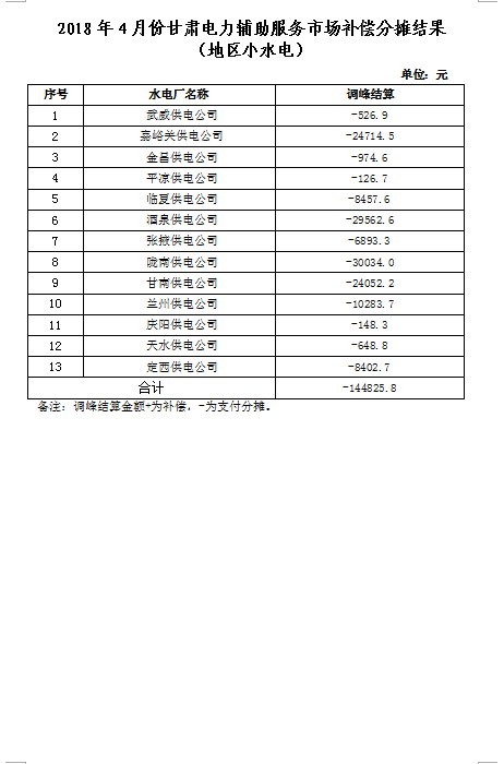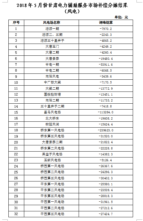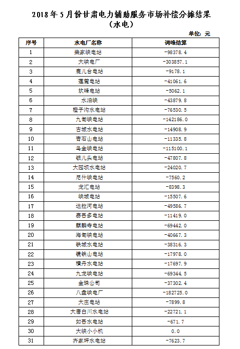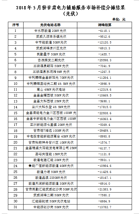 甘肅公布2018年4-5月份電力輔助服務(wù)市場(chǎng)補(bǔ)償分?jǐn)偨Y(jié)果