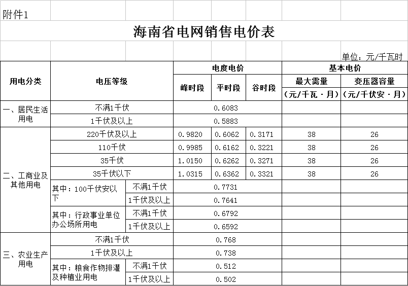1、海南省電網(wǎng)銷售電價表