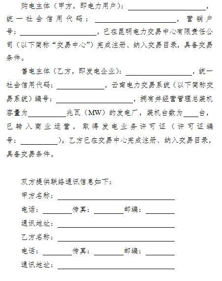 云南2019年年度雙邊協(xié)商交易合同(參考文本)發(fā)布