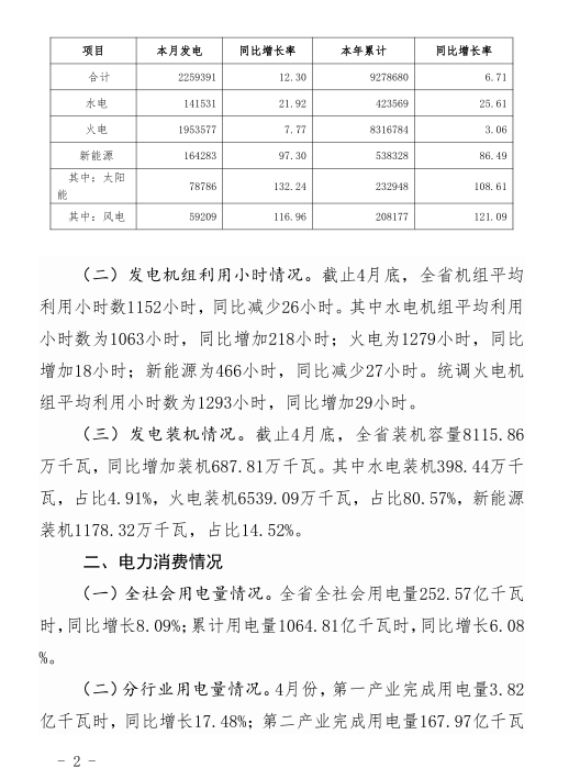 4月河南省全社會用電量252.57億千瓦時 同比增長8.09%