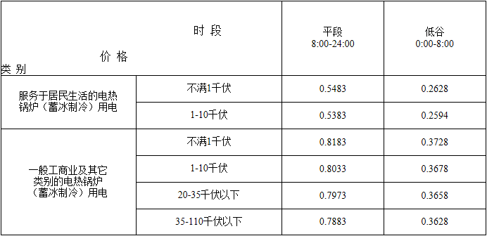 江蘇省電熱鍋爐(蓄冰制冷)峰谷分時(shí)銷(xiāo)售電價(jià)表