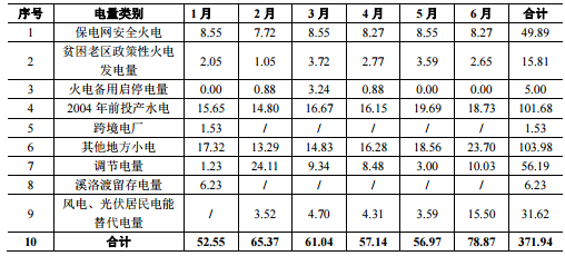 2017 年上半年,優(yōu)先發(fā)電量合計 371.94 億千瓦時。其中,保電網(wǎng)安全火電(含熱電聯(lián)產(chǎn))電量 49.89 億千瓦時;貧困老區(qū)政策性火電發(fā)電量 15.81 億千瓦時;火電備用狀態(tài)確認(rèn)電量 5 億千瓦時;2004年以前投產(chǎn)的水電廠發(fā)電量 101.68 億千瓦時;跨境電廠電量 1.53 億千瓦時;其他地方小電電量 103.98 億千瓦時;年調(diào)節(jié)水庫調(diào)節(jié)電量56.19 億千瓦時,溪洛渡留存云南消納電量 6.23 億千瓦時;風(fēng)電、光伏居民電能替代電量 31.62 億千瓦時。