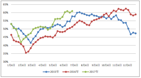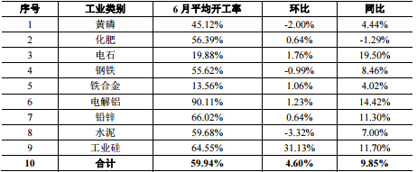 分行業(yè)來看,上半年,一系列供給側(cè)改革政策的發(fā)布不斷推高鋁價,省內(nèi)電解鋁企業(yè)在客觀利潤的刺激下,開工積極性高漲,行業(yè)開工率達(dá)到 90%。鋼鐵行業(yè)受國家去產(chǎn)能政策、國內(nèi)大量基礎(chǔ)設(shè)施建設(shè)項(xiàng)目獲批的雙重利好影響下,年后開始鋼材價格持續(xù)上漲,鋼鐵行業(yè)開工率也持續(xù)走高,達(dá)到 60%,為近三年來同期最高水平。水泥行業(yè)受全省固定資產(chǎn)投資持續(xù)增長帶動,春節(jié)后開工率持續(xù)攀升,4 月份開工率達(dá)到 68%,為近三年同期最高。黃磷行業(yè)雖然受上半年原料成本上漲影響,但在電力市場化改革紅利持續(xù)釋放下,今年以來開工率仍整體好于去年,最高開工率達(dá)到了 50%。鐵合金、化肥行業(yè)自 2015年以來受下游產(chǎn)品價格持續(xù)疲軟的影響,鐵合金、化肥行業(yè)開工率一直保持低位運(yùn)行。其他行業(yè)受電力市場改革紅利釋放的帶動,開工率普遍好于去年。