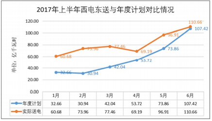 圖 2.6 2017 年上半年西電東送與年度計劃對比情況