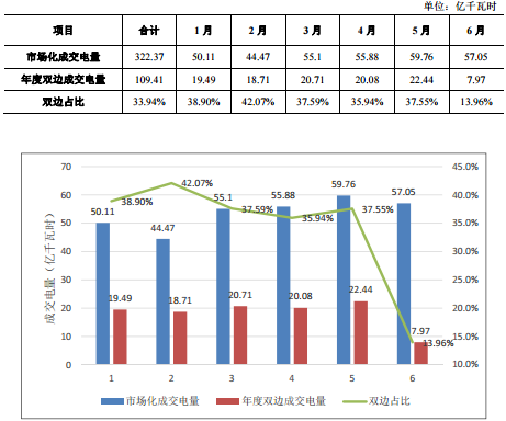 圖 3.4 2017 年上半年年度雙邊交易成交電量與市場化成交電量情況