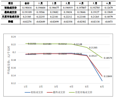 度集中撮合交易平均成交價作為參考,上下浮動一定的比例作為最終的成交價。2017 年上半年,年度雙邊合同電廠側(cè)初始平均成交價每千瓦時 0.19042 元,最終平均成交價每千瓦時 0.19111 元,每千瓦時較初始成交價上漲 0.00069 元,每千瓦時較月度市場平均成交價低0.023 元。
