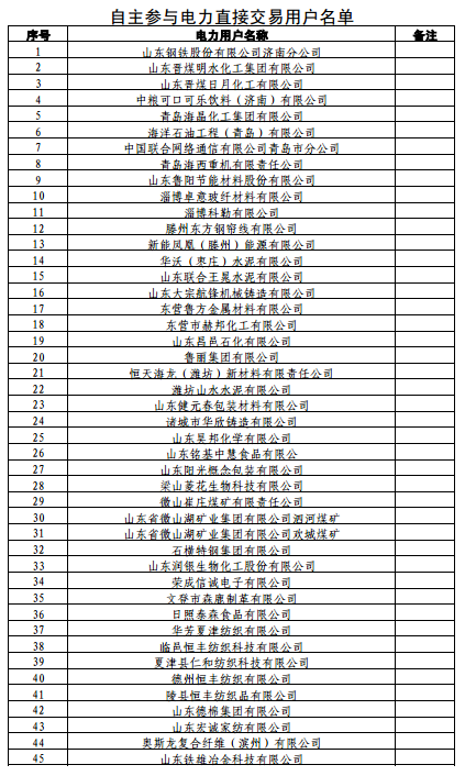 山東23日開展12月份電力直接交易(集中競價)