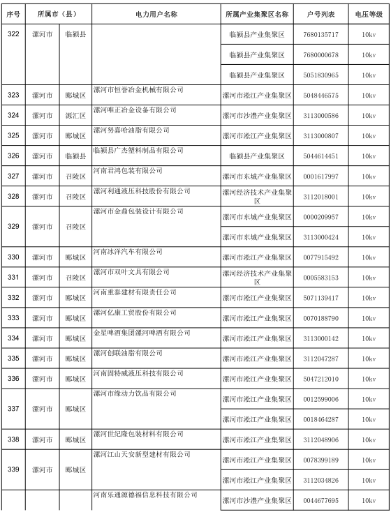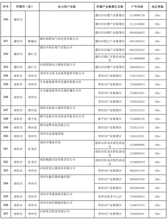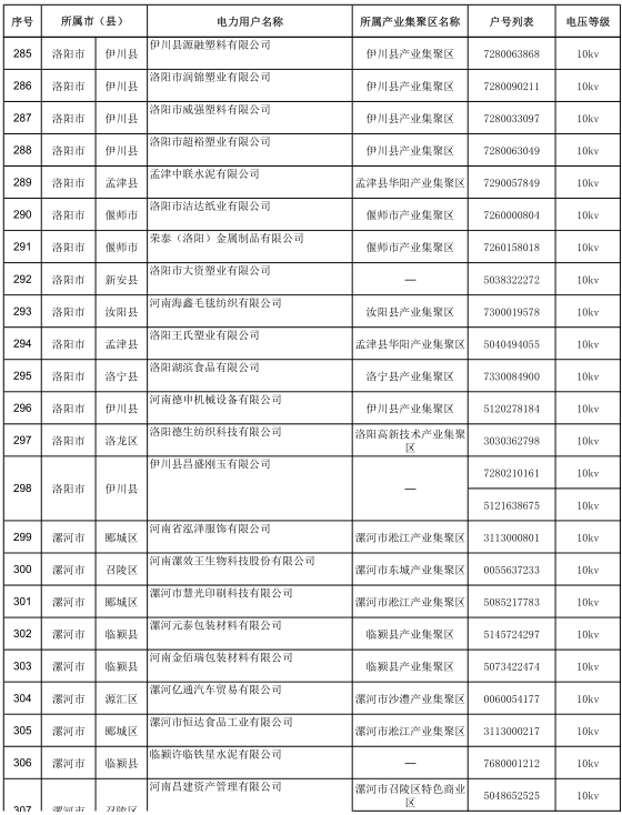 2017年河南省770家新增電力用戶公示名單(第七批)