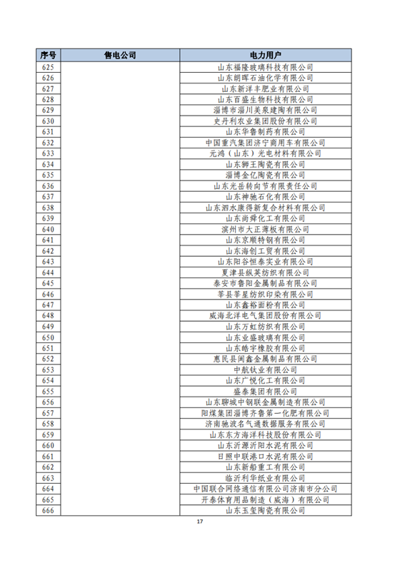 山東2018年省內(nèi)電力交易用戶與售電公司代理關(guān)系及自主參與直接交易用戶名單