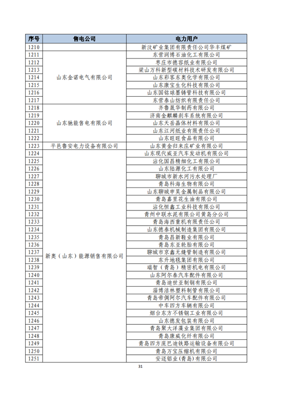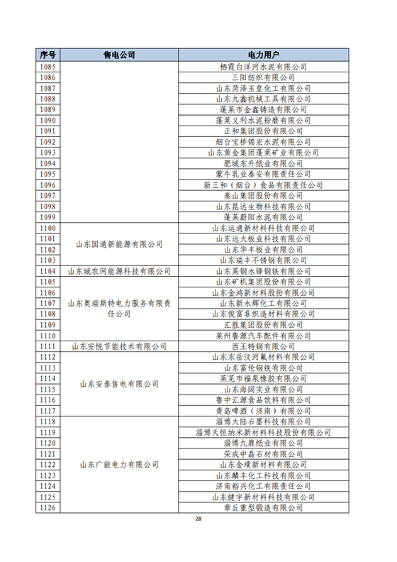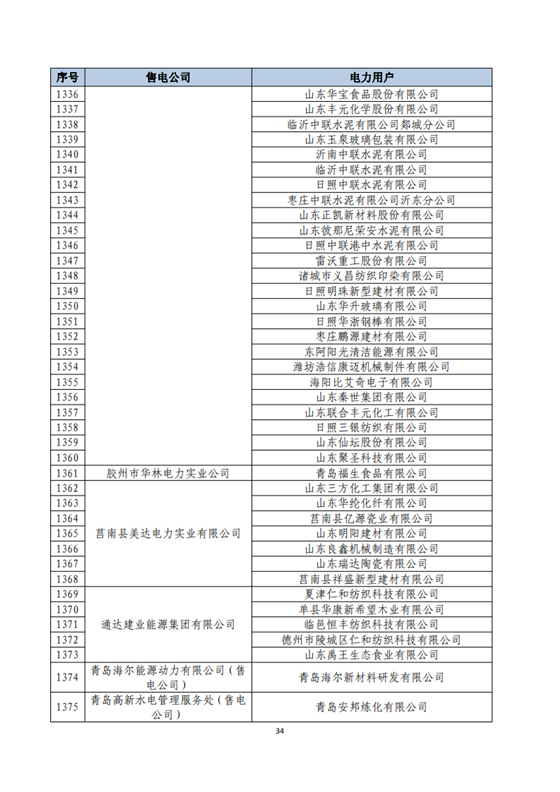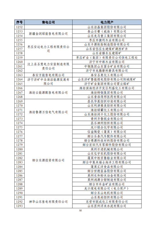 山東2018年省內(nèi)電力交易用戶與售電公司代理關(guān)系及自主參與直接交易用戶名單