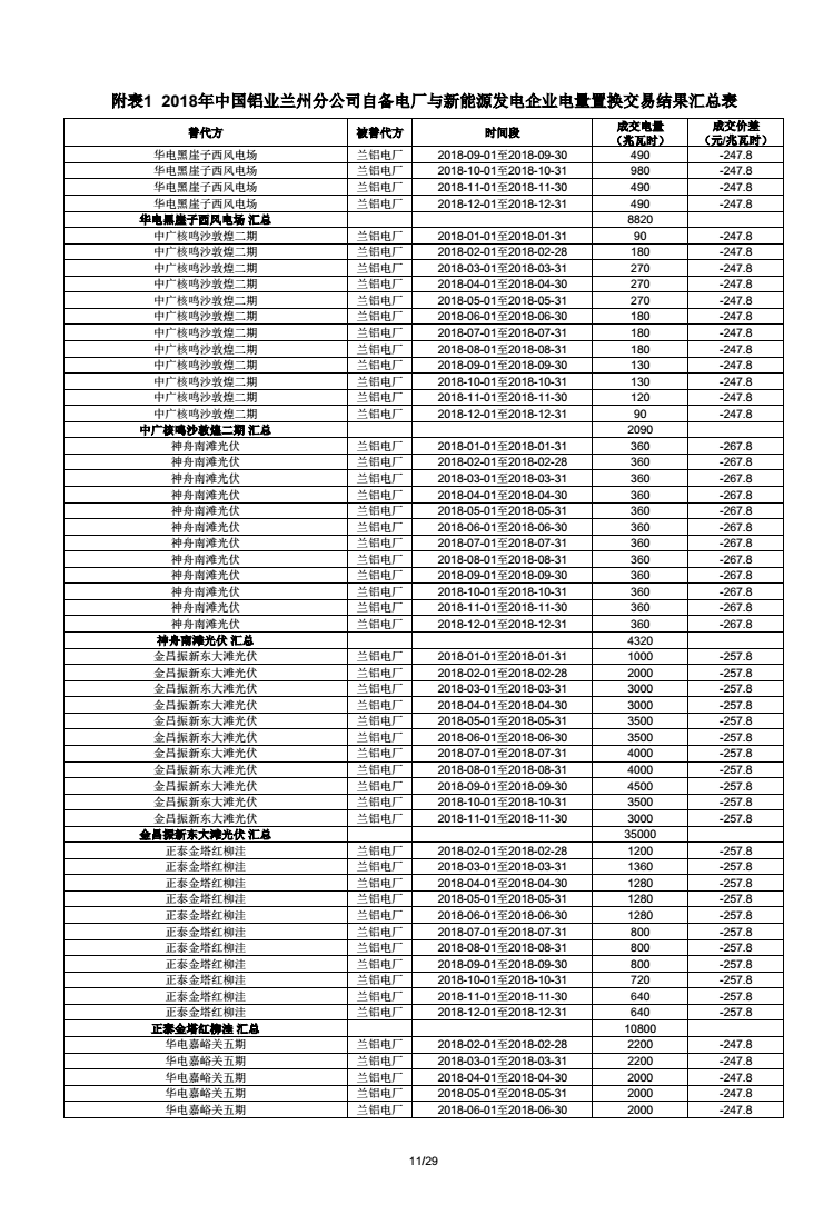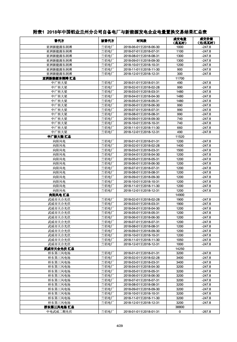 《2018年甘肅蘭鋁、金川集團、玉門石油自備電廠與新能源發(fā)電企業(yè)電量置換交易結果公告(2018年1月23日)》:總成交量24.55億千瓦時