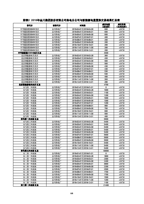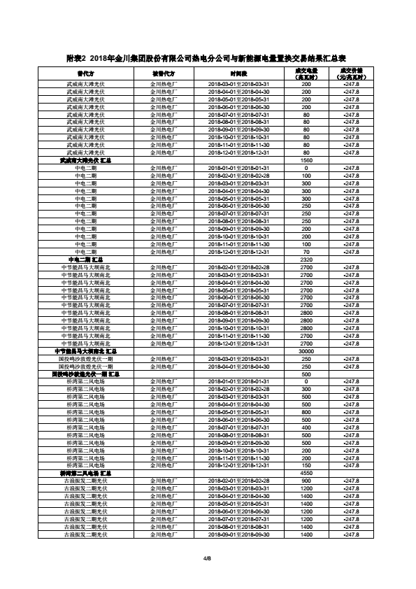 《2018年甘肅蘭鋁、金川集團(tuán)、玉門石油自備電廠與新能源發(fā)電企業(yè)電量置換交易結(jié)果公告(2018年1月23日)》:總成交量24.55億千瓦時