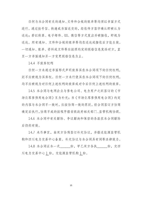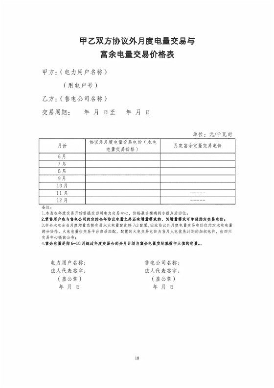 試行文本 | 四川售電公司與電力用戶購售電合同