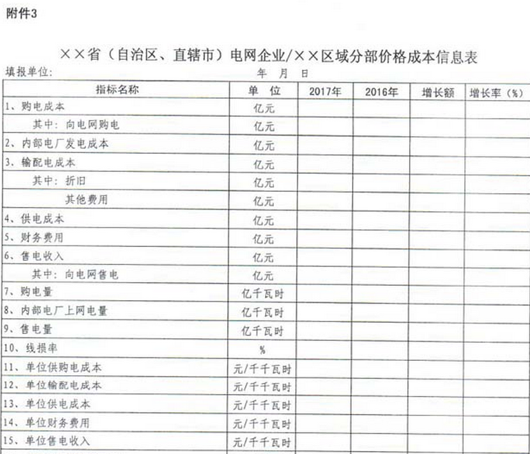 國家能源局日前發(fā)布了《關(guān)于報(bào)送2017年度電力價(jià)格與成本信息的通知》。通知中稱,為全面準(zhǔn)確反映全國各地電力價(jià)格、成本信息及變化情況,更