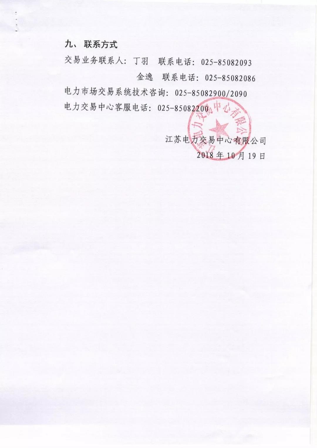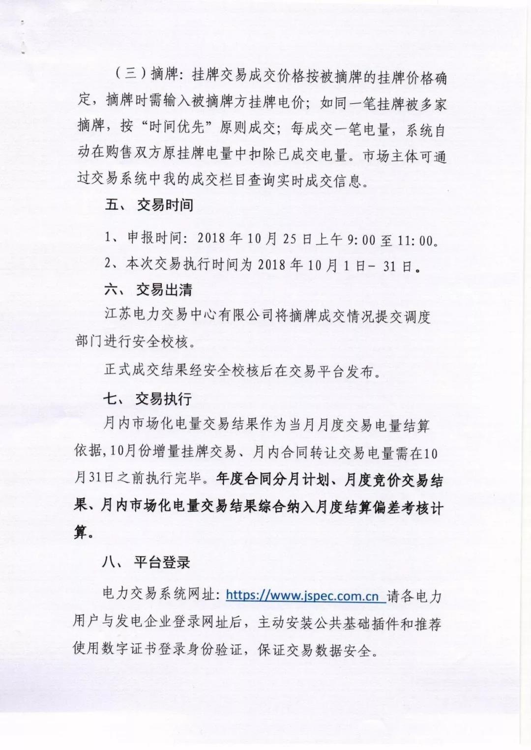 2018年10月份江蘇電力市場(chǎng)月內(nèi)交易公告