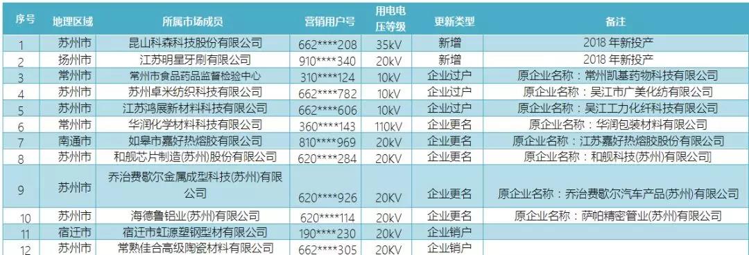江蘇電力市場準(zhǔn)入第十次更新用戶名單