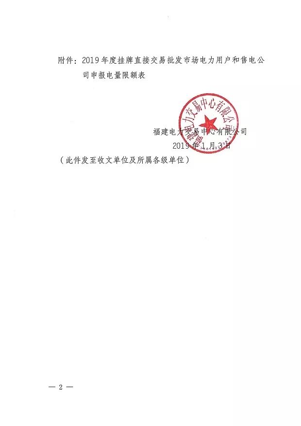 福建電力交易中心發(fā)布了《關(guān)于重新發(fā)布2019年度掛牌直接交易申報電量限額的通知》