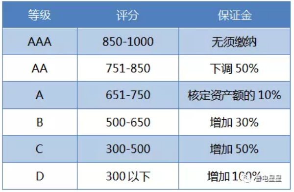 評(píng)價(jià)越低,保證金繳納越多,甚至翻倍??梢姡垭姽居眯木S護(hù)自身信用,是在為自己省大錢啊。