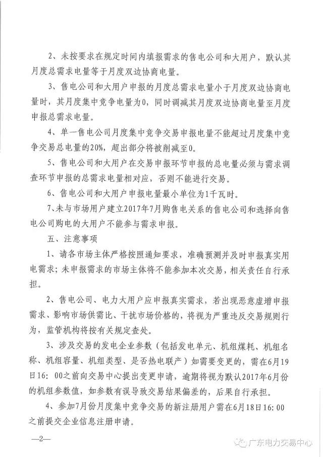 廣東電力交易中心日前發(fā)布了《2017年7月集中競(jìng)爭(zhēng)交易需求申報(bào)的通知》,通知中稱(chēng),交易時(shí)間為6月15日16:00至6月19日16:00,申報(bào)主體:與市場(chǎng)用戶(hù)建立2017年7月購(gòu)售電關(guān)系的售電公司和選擇參與批發(fā)市場(chǎng)交易的大