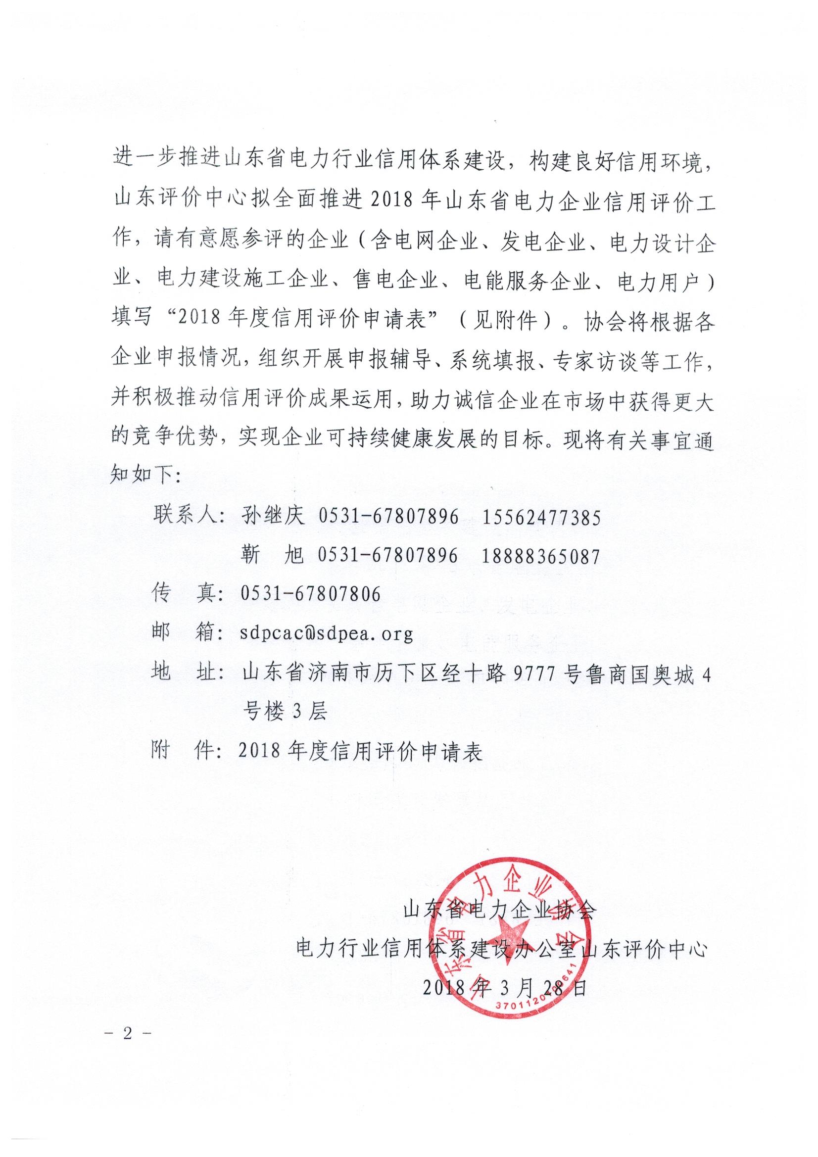 山東省電力企業(yè)協(xié)會日前發(fā)布了《關(guān)于開展2018年山東省電力企業(yè)信用評價工作的通知》,通知中稱,山東擬全面推進2018年山東省電力企業(yè)信用評