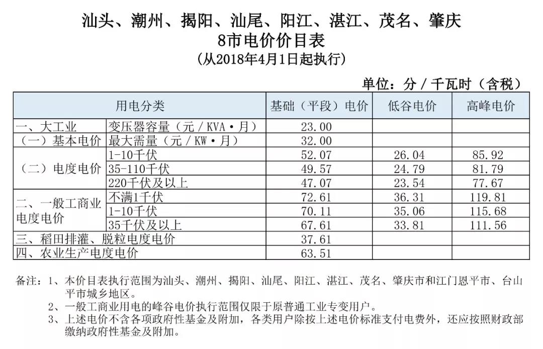 一、全省除深圳市外一般工商業(yè)電度電價每千瓦時統(tǒng)一降低1.78分(含稅,下同);深圳市的一般工商業(yè)電價和大工業(yè)電價已合并為工商業(yè)及其他電價,其各類工商業(yè)及其他電價均統(tǒng)一降低0.59分。各地各用戶調(diào)價后的具體電價標(biāo)準(zhǔn)見附件。上述規(guī)定自2018年4月1日起執(zhí)行。