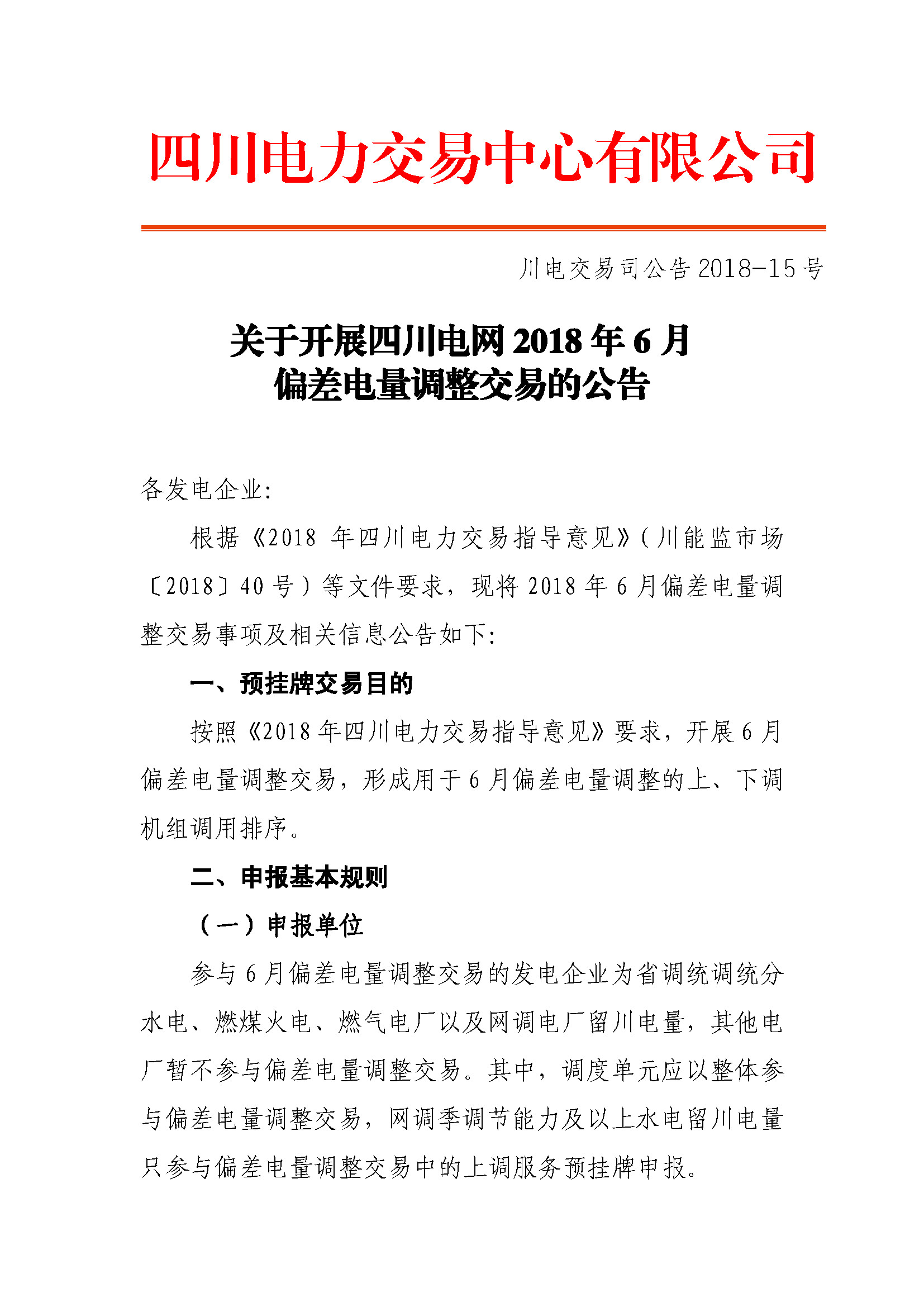 重要 | 四川開(kāi)展2018年6月偏差電量調(diào)整交易