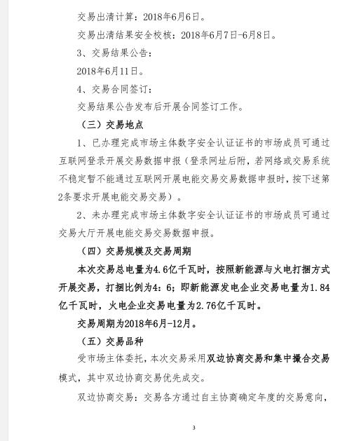 甘肅電力交易中心日前發(fā)布了《2018年蘭鋁自備電廠與火電、新能源發(fā)電企業(yè)發(fā)電權(quán)置換交易市場公告(4.6億)》,本次交易總電量為4.6億千瓦時,按照新能源與火電打捆方式開展交易,打捆比例為4:6;即新能源發(fā)電企業(yè)交易電量為1.84億千瓦時,火電企業(yè)交易電量為2.76億千瓦時 。交易周期為2018年6月—12月。受市場主體委托,本次交易采用雙邊協(xié)商交易和集中撮合交易模式,其中雙邊協(xié)商交易優(yōu)先成交。