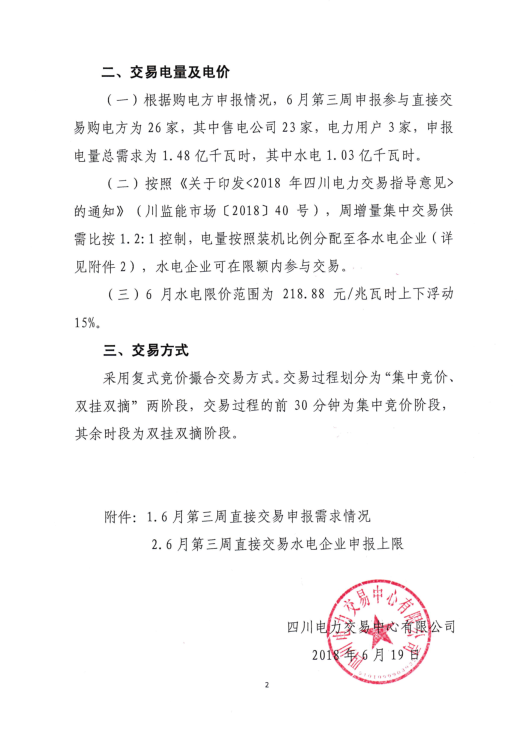 四川開展2018年6月第三周直接交易 申報電量總需求1.48億千瓦時(附名單)